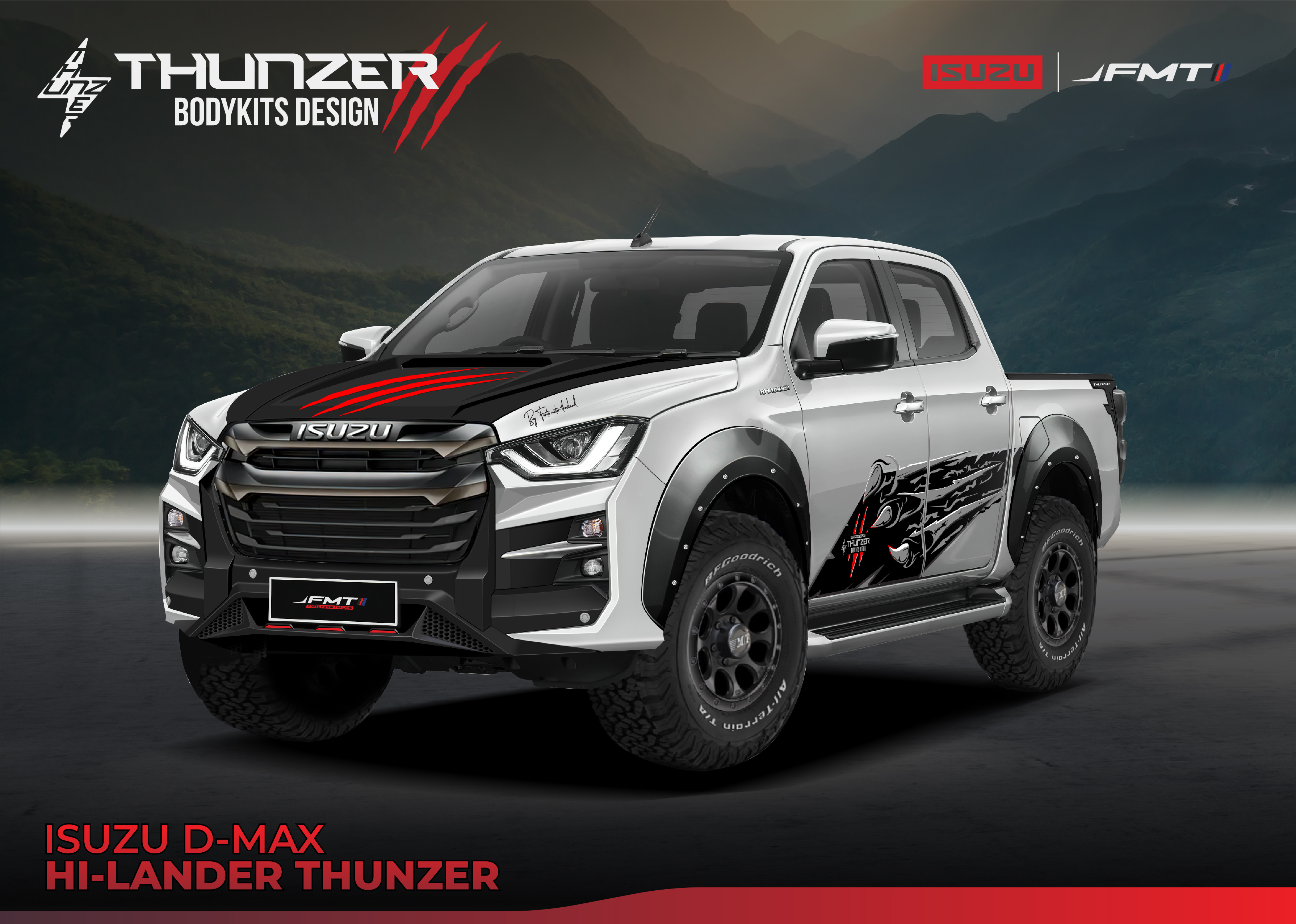 ดีไซน์โฉมใหม่โดดเด่นและล้ำสมัย Dmax ประกอบด้วย สเกิร์ตหน้า สเกิร์ตหลัง สเกิร์ตข้าง กระจังหน้า สคู๊ป ซุ้มล้อ กาบด้านหลัง ครอบไฟท้าย ที่ดีไซน์ออกมาสุดเท่ห์ ล้ำสมัยสะดุดสายตา โดดเด่นด้วยการออกแบบดุดันและพรีเมียม ร่างกายสปอร์ต และประสิทธิภาพขับเคลื่อนที่ยอดเยี่ยม