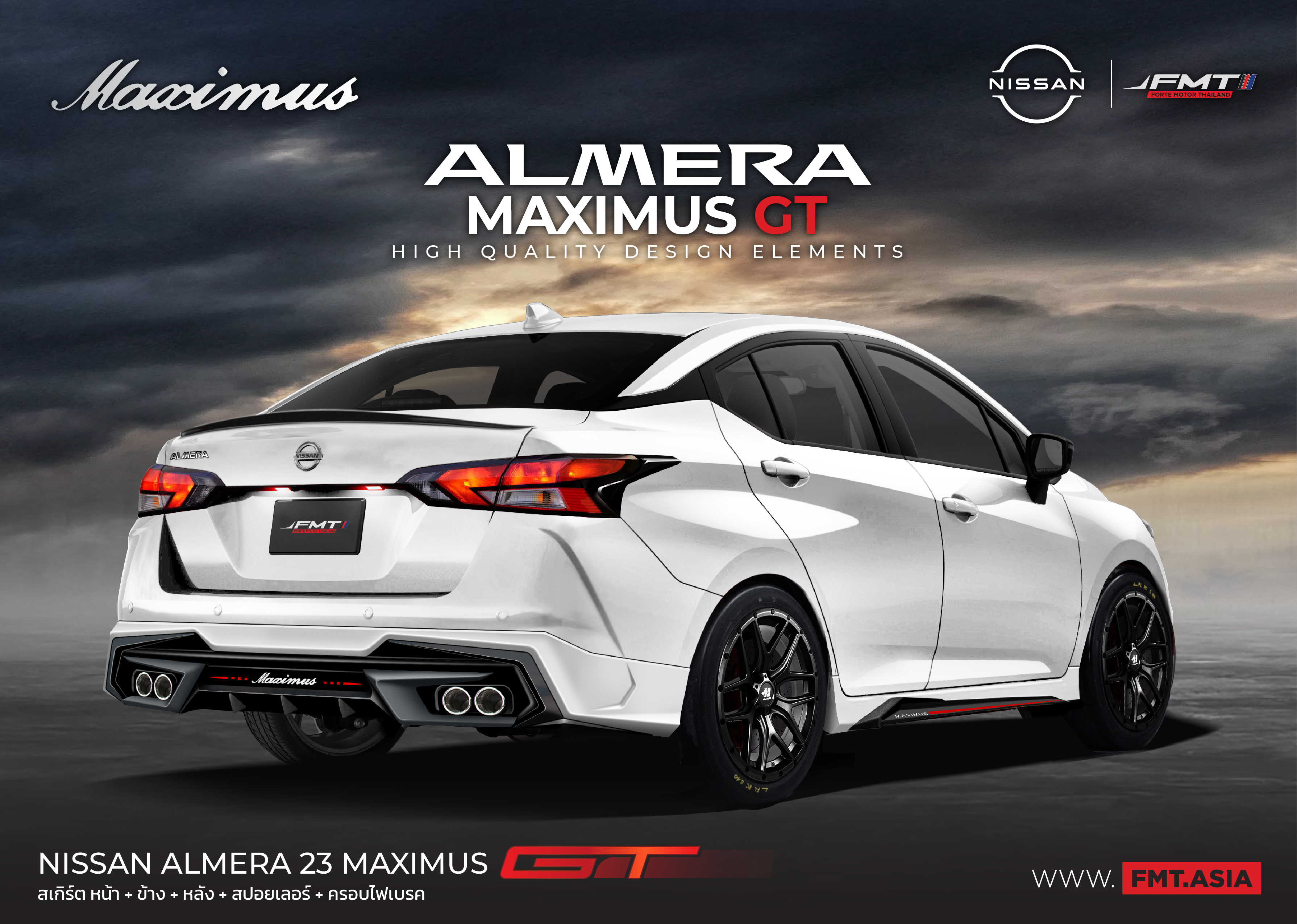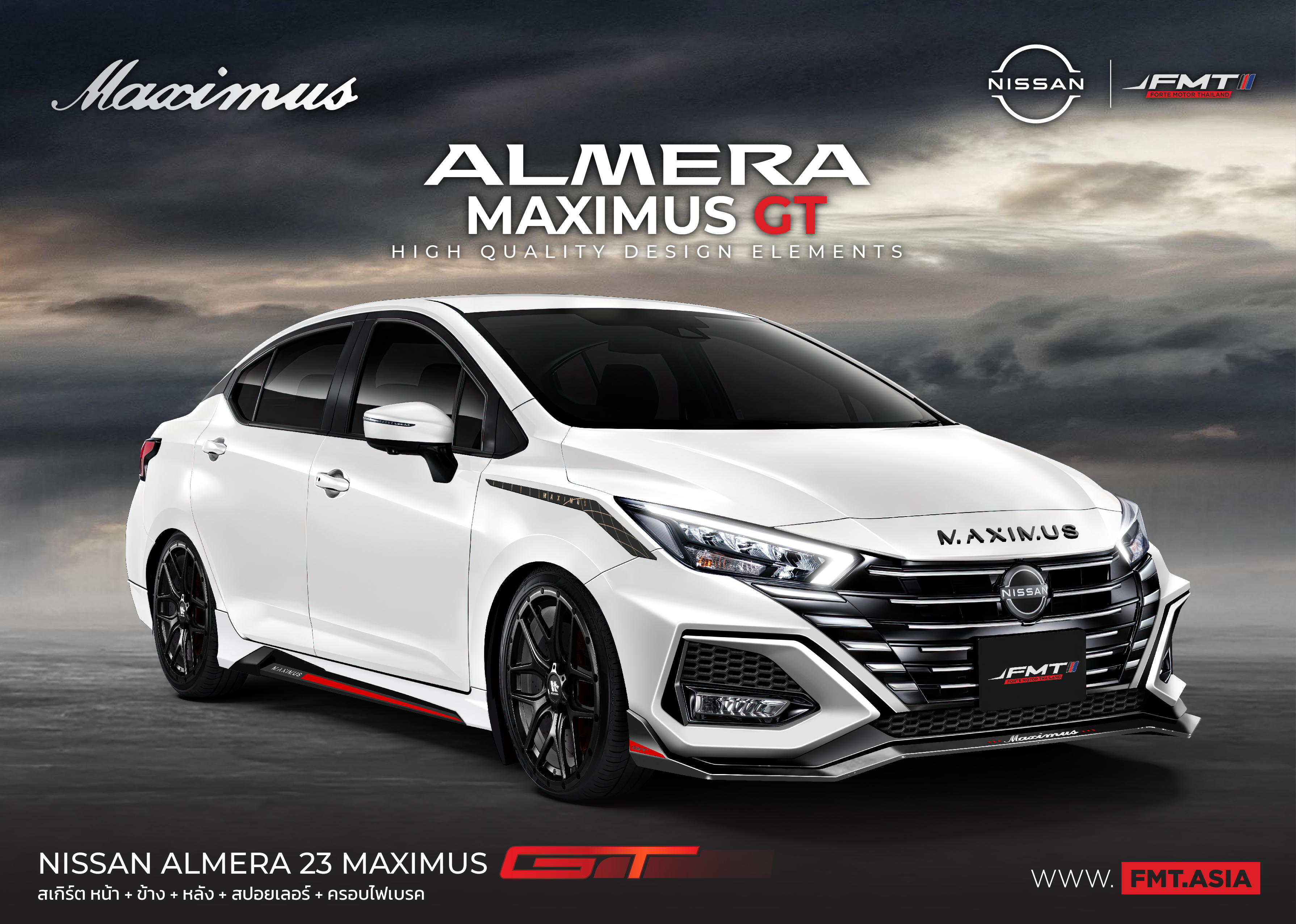 ชุดแต่ง NISSAN ALMERA 2023 MAXIMUS GT ชุดแต่ง MAXIMUS by FMT พลิกโฉมความเป็นผู้นำด้วยดีไซน์ใหม่ ออกแบบอย่างลงตัว ชุดแต่ง MAXIMUS (แม็กซิมัส) จัดเต็มครบชุดทุกชิ้นส่วน ทั้งเสกิร์ตชิ้นหน้า หลัง ข้าง และสปอยเลอร์ ดุ สปอร์ต ตอกย้ำความเป็นแม็ก ซิ มัสด้วยชุดแต่งที่ตอบโจทย์ทุกไลฟ์สไตล์ไม่ซ้ำไม่ซ้ำใคร NISSAN ALMERA 2023 MAXIMUS GT