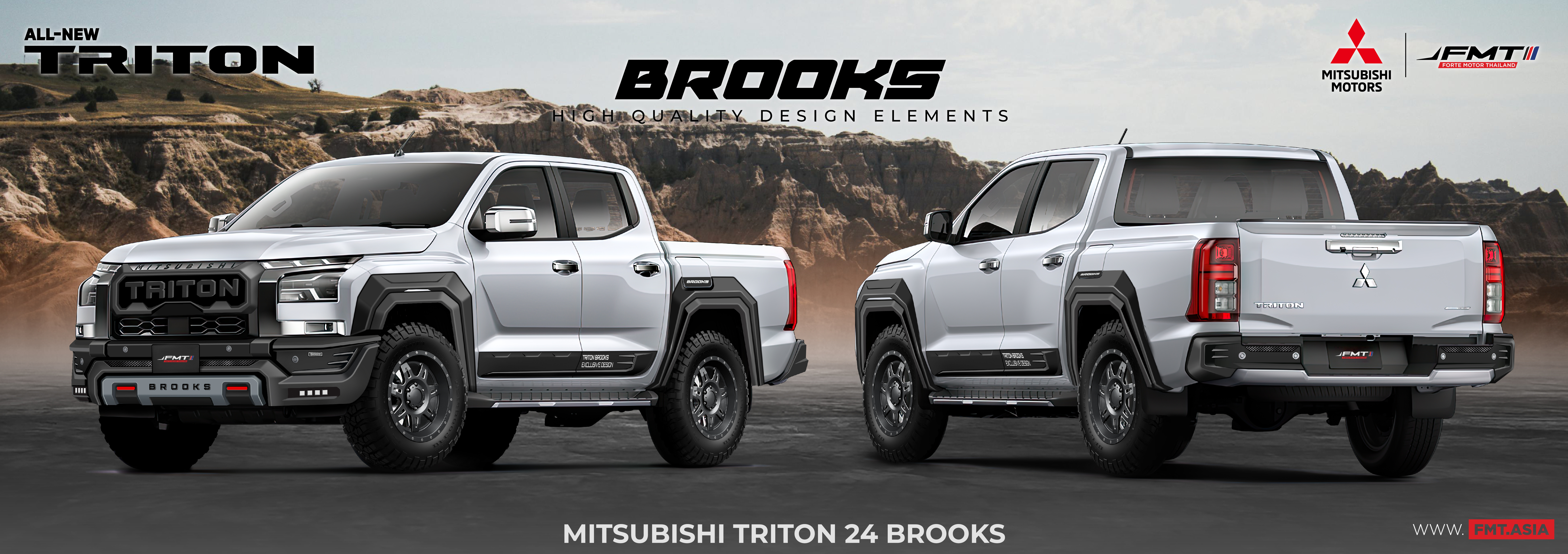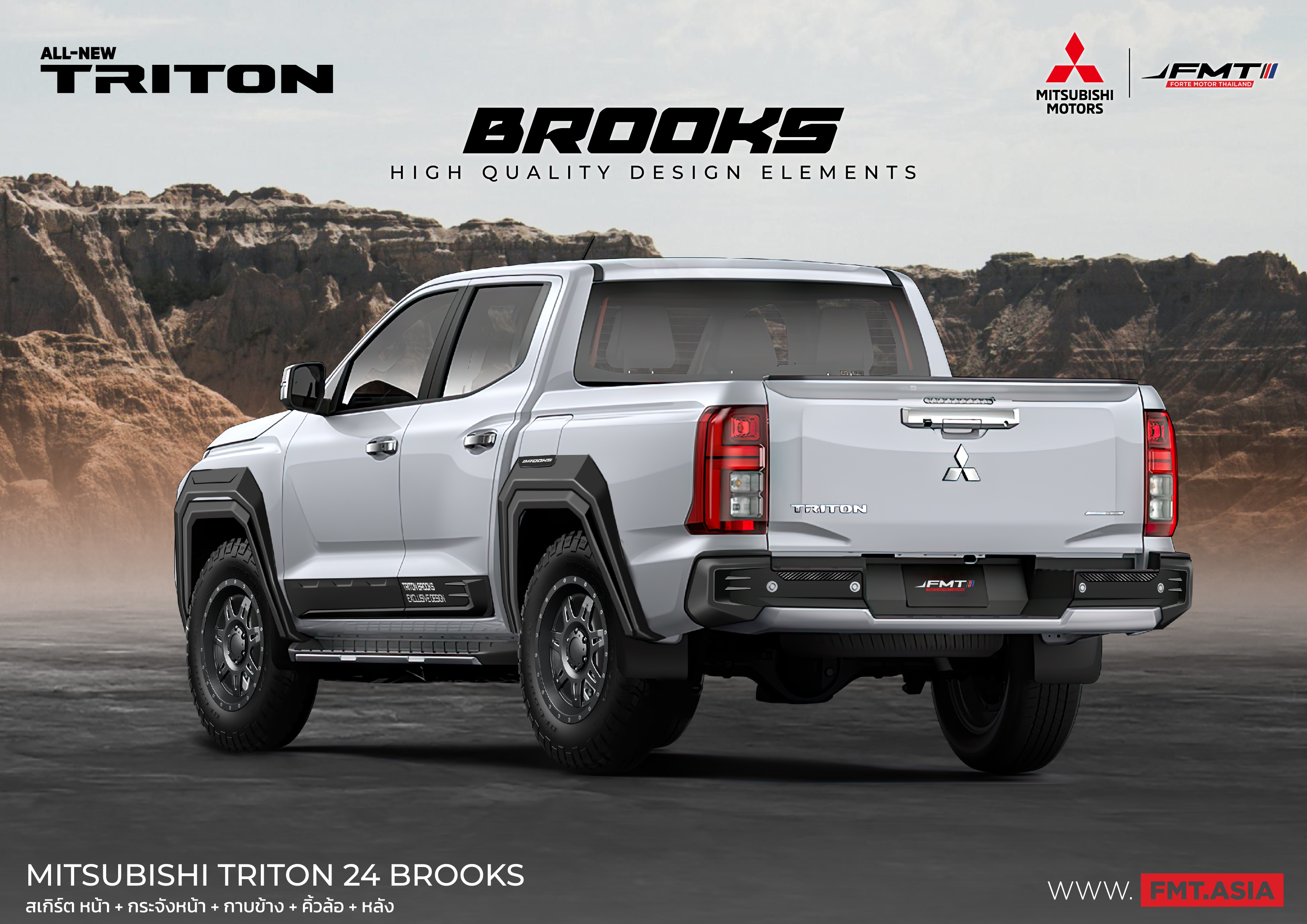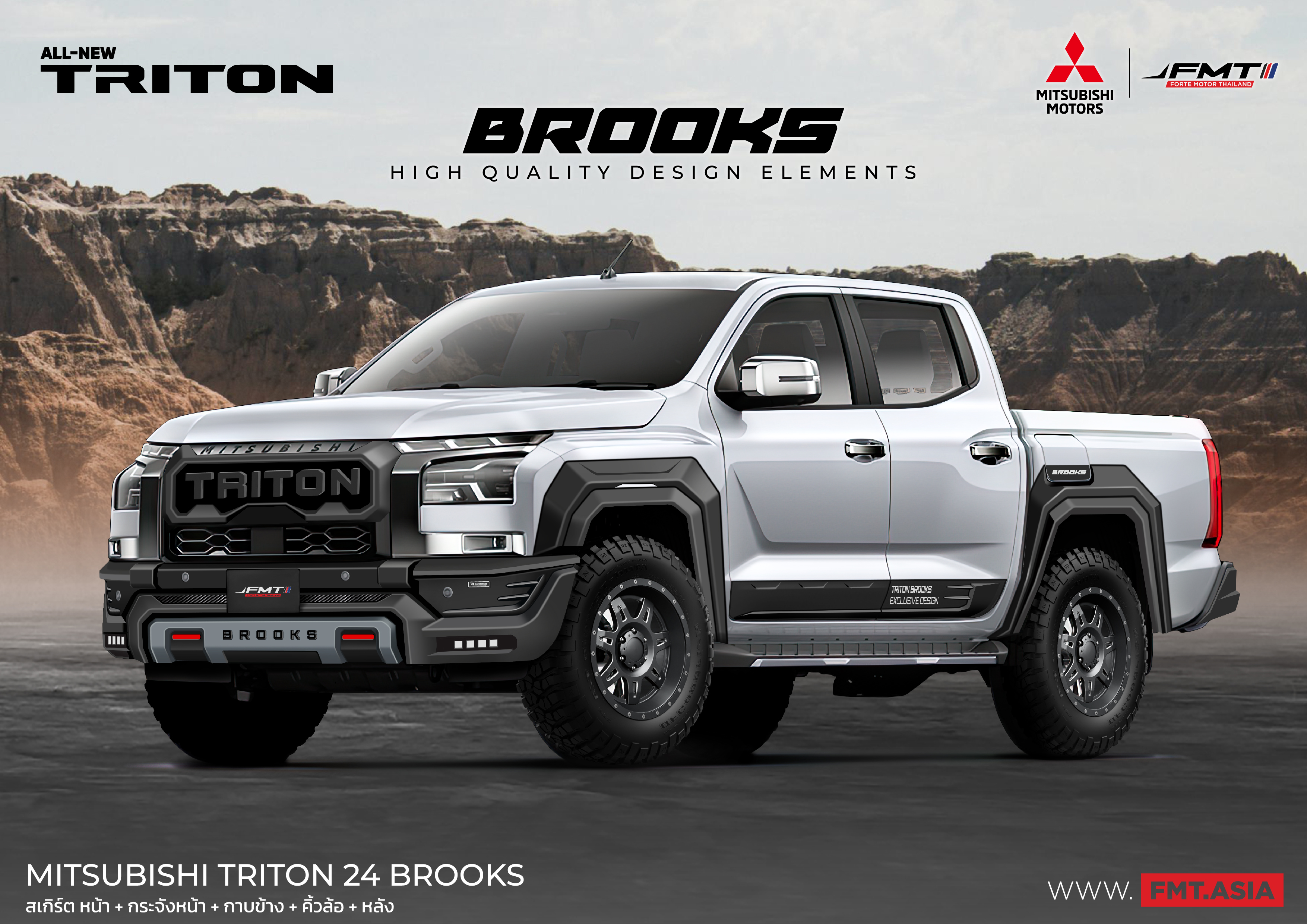 ชุดแต่ง Mitsubishi TRITON by BROOKS จัดเต็มครบเซต 12 ชิ้น แบบดุดัน สเกิร์ตชิ้นหน้า สเกิร์ต ซุ้มล้อ กาบข้างและจังหน้า หล่อ แรง แต่งเฟี้ยว สะท้อนตัวตนในแบบคุณ กับอุปกรณ์ตกแต่ง FMT by BROOKS มเข้มรอบคัน ตัวจริงแกร่ง อึด เอาอยู่ ชุดแต่ง Mitsubishi by BROOKS