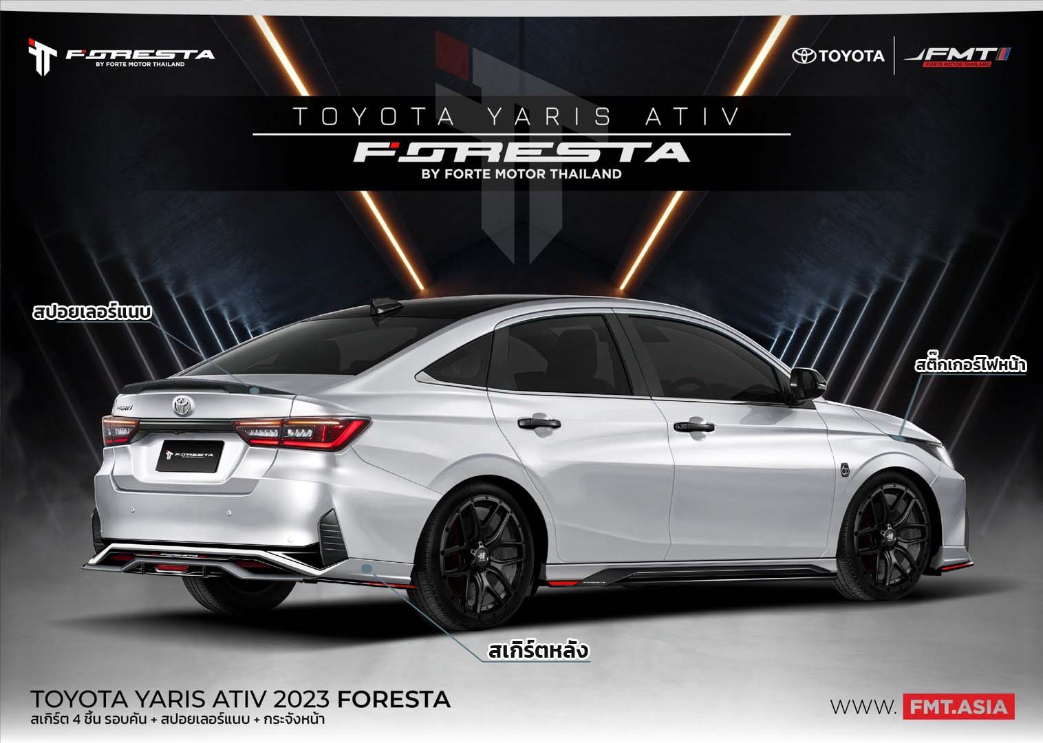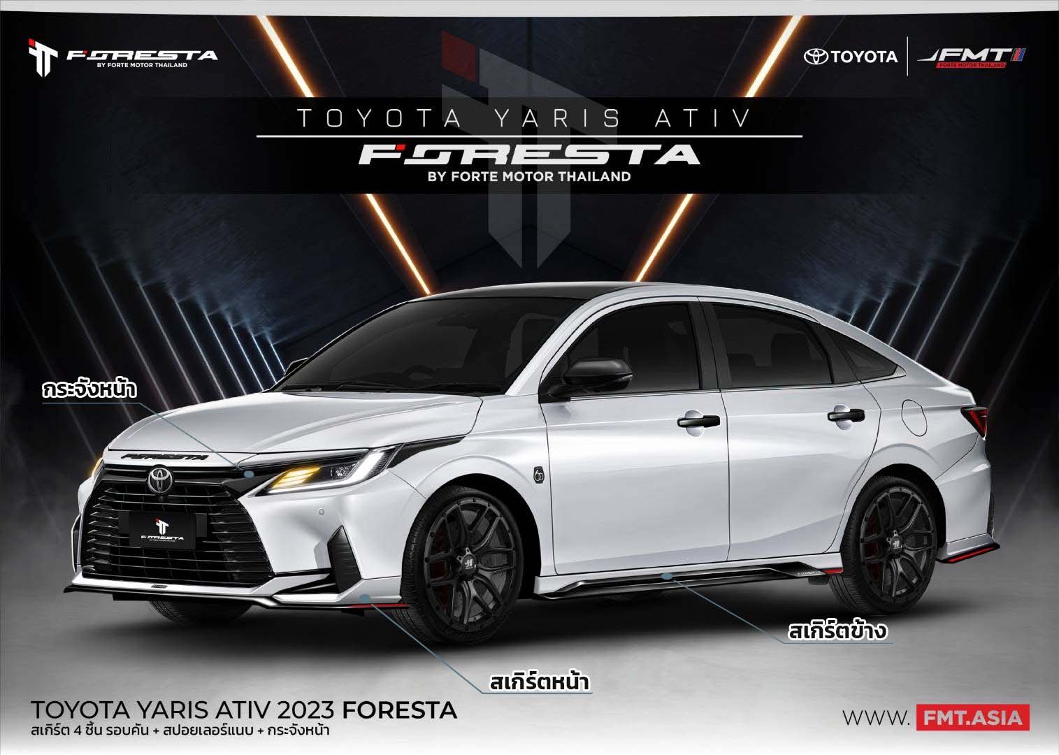 TOYOTA YARIS ATIV V2 7 ชิ้น สเกิร์ตหน้า ดุคม โดดเด่นด้วยโลโก้ 3D Foresta สีดำ ที่ตัดกับสีรถ สเกิร์ตข้าง ซ้าย-ขวา ดีไซน์โฉบเฉี่ยวที่ดูสปอร์ตลงตัว สเกิร์ตหลัง ทรงท่อคู่ ซ้ายขวา สุดเท่ห์ สปอยเลอร์หลังแบบแนบลายเคฟร่า สินค้าที่ขายดีที่สุด ชุดแต่ง ATIV FORESTAสไตล์ท่อคู่ เปลี่ยนประสบการณ์ที่เฉยๆให้เท่ห์ล้ำ ด้วยชุดแต่ง FORESTA ทรงสปอร์ตสะกดทุกสายตา