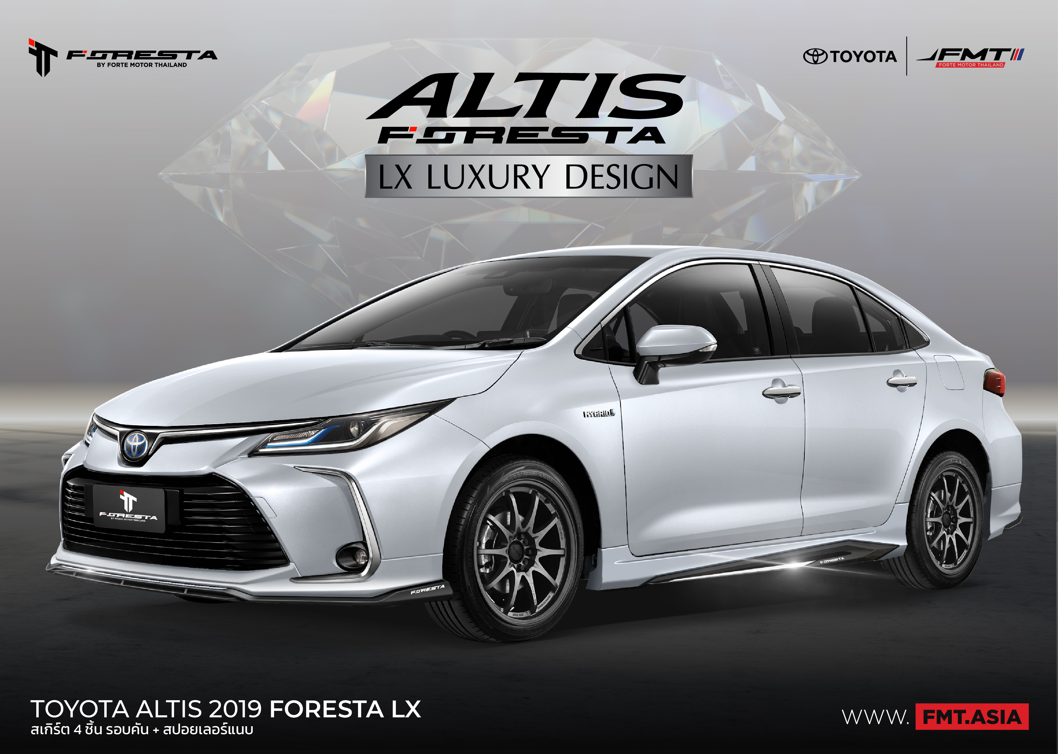 ชุดแต่ง COROLLA ALTIS 5 ชิ้น ประกอบด้วยรอบคัน สเกิร์ตหน้า/สเกิร์ตหลัง/สเกิร์ตข้างซ้าย-ขวา/สปอยเลอร์หลัง ที่สามารถยกระดับความโฉบเฉี่ยวให้โดดเด่นยิ่งขึ้นไปอีกระดับ ด้วยชุดแต่ง FORESTA เพื่อเน้นความเรียบหรูและสปอร์ต ผลิตจากวัสดุคุณภาพสูง ผ่านการดีไซน์อย่างพิถีพิถัน ออกแบบมาในสไตล์ พรีเมี่ยม โดยมีเส้นสีแดงที่ตัดกับตัวสีรถ ที่ทำให้ตัวสเกิร์ตรอบคัน ดูโดดเด่นมากยิ่งขึ้น