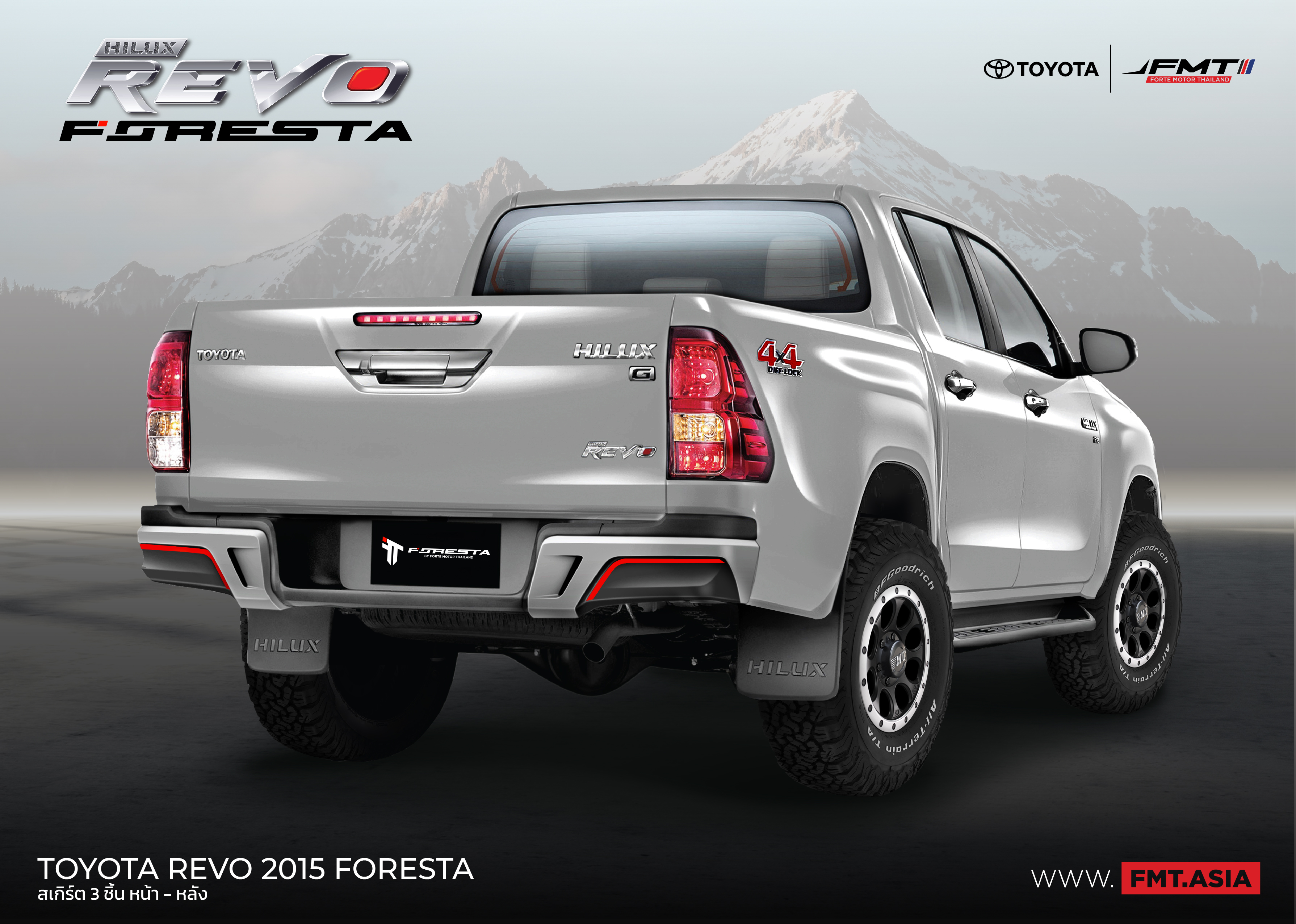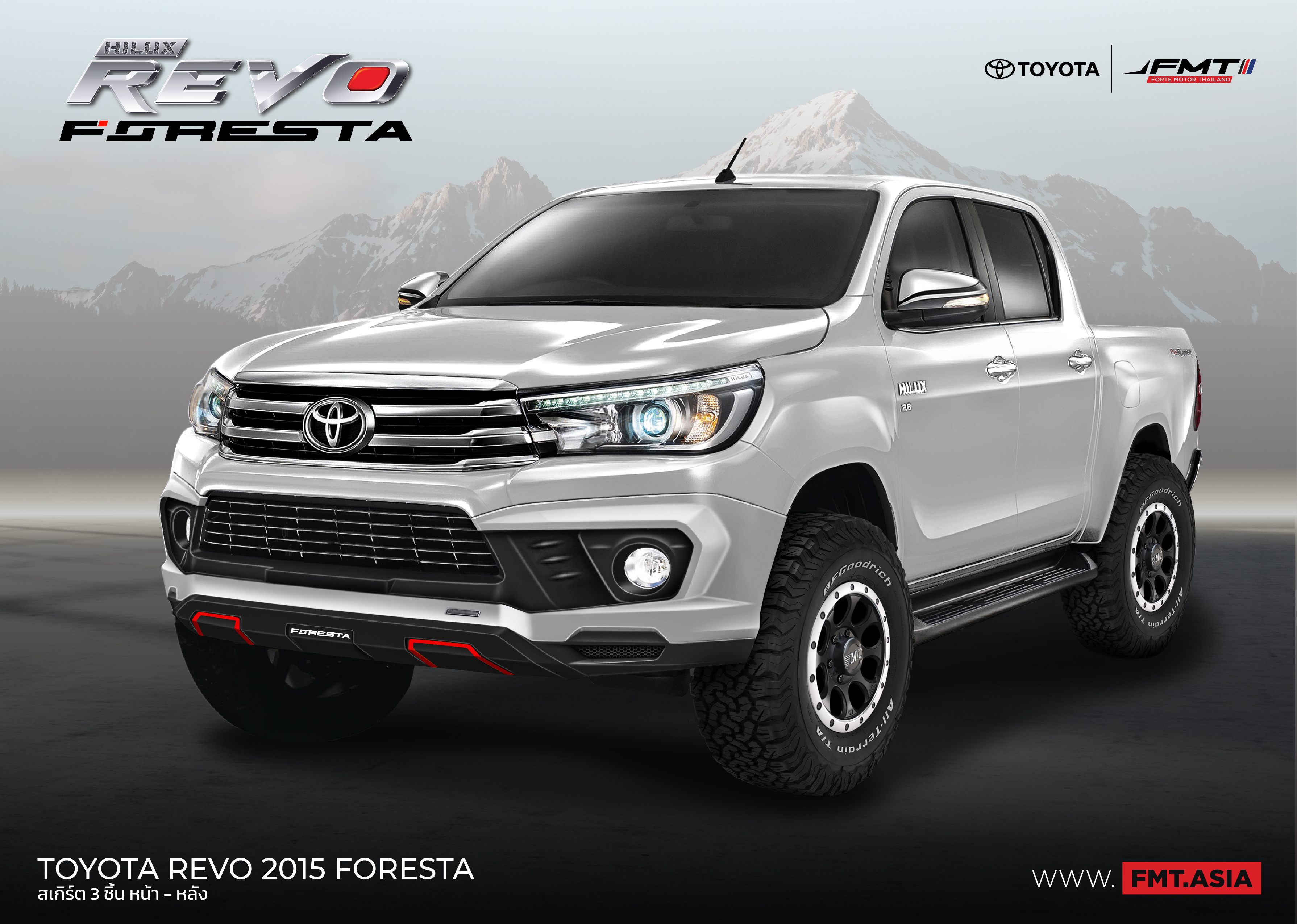 ชุดแต่ง FORESTA by FMT TOYOTA HILUX REVO 2015 FORESTA รูปลักษณ์ดีไซน์สปอร์ต แข็งแกร่ง ชุดแต่งรอบคันประกอบไปด้วย สเกิร์ตชิ้นหน้า สเกิร์ตชิ้นหลัง สเกิร์ตชิ้นหลังซ้าย สเกิร์ตชิ้นหลังขวา ดีไซน์บึกบึน มากเข้ม รับประกันชิ้นงานถึง 1 ปีเต้ม รับประกันงานสีอีก 3 ปี "แต่งรถถูกใจ ตามสไตล์ของคุณ" ตามสไตล์ FMTbyFORESTA
