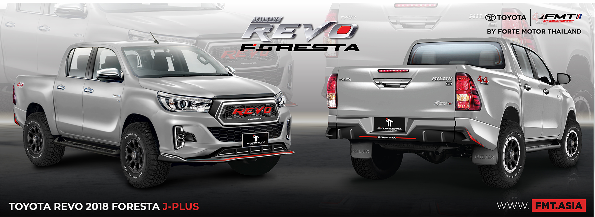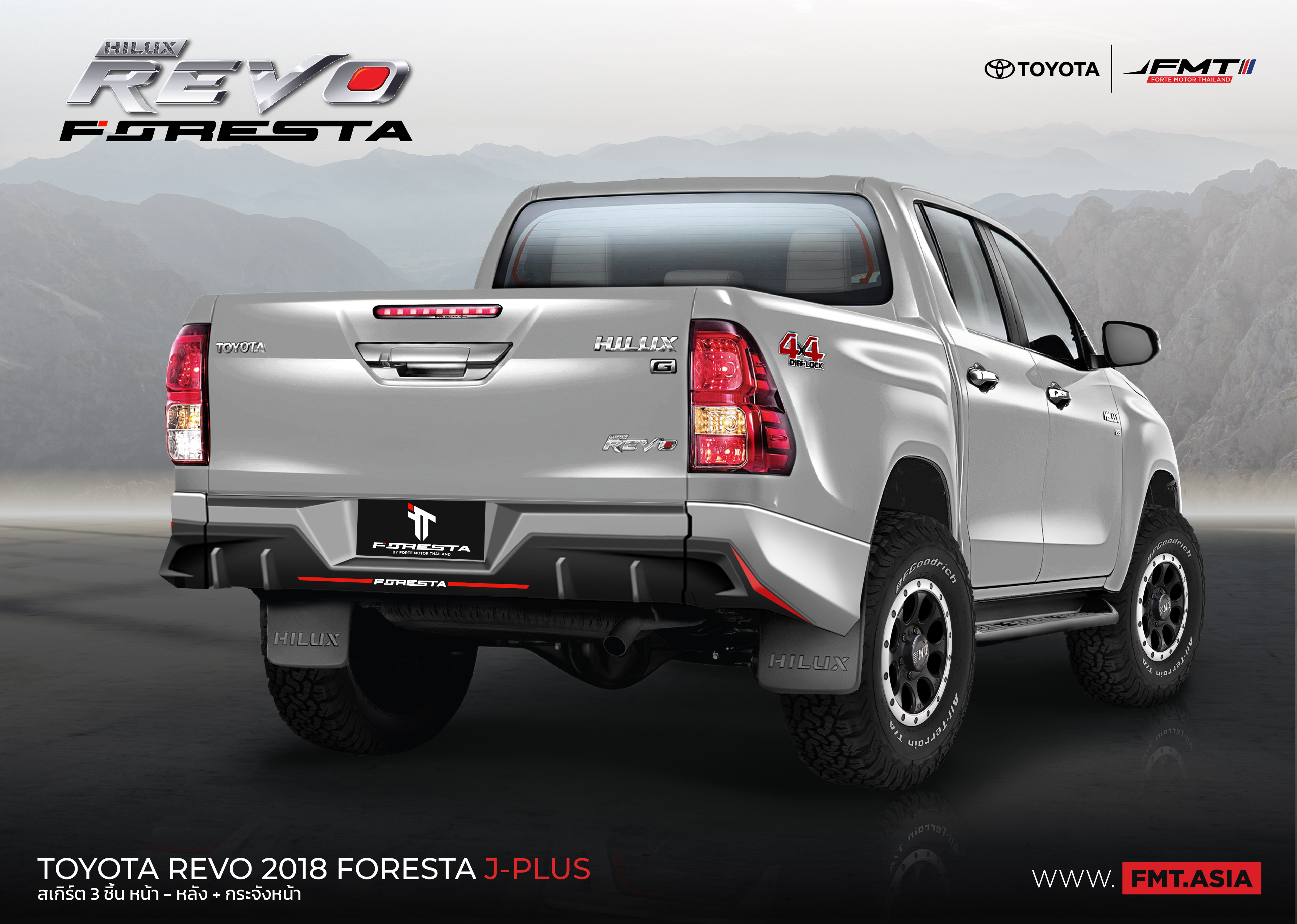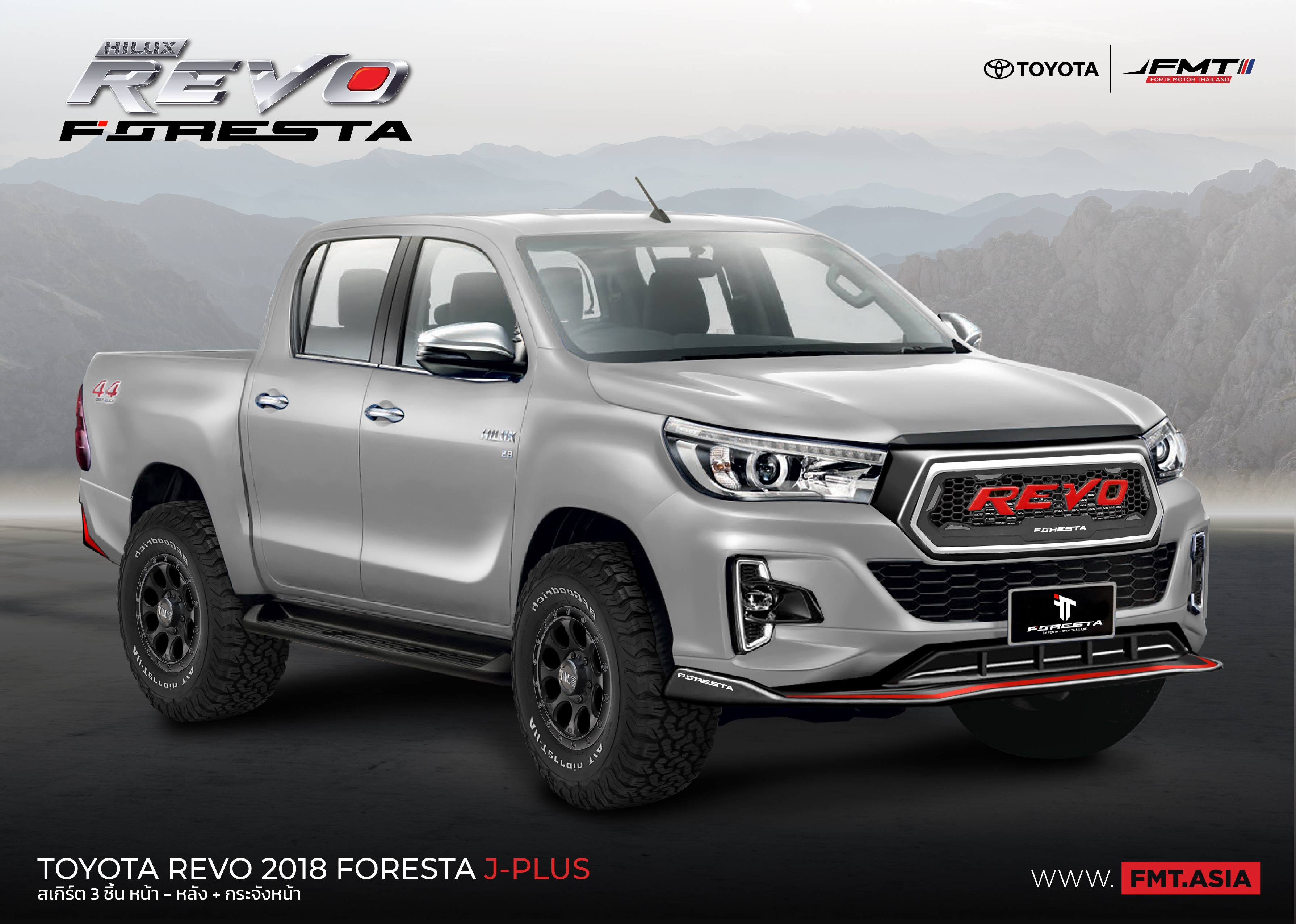 TOYOTA HILUX REVO PRERUNNER 2018 ที่มาพร้อมชุดแต่ง FORESTA (J-PLUS) โดดเด่นด้วยดีไซน์ เสริมความแกร่งให้ทุกไลฟ์สไตล์ เป็นไปได้ทุกการใช้ชีวิต ด้วยสเกิร์ตรอบคัน FORESTA สเกิร์ตชิ้นหน้า สเกิร์ตหลัง และ กระจังหน้า ไลฟ์สไตล์ที่คุณต้องหันมอง แข่งแกร่งเหนือชั่น ดุดันเกินใคร #FMTbyFORESTA